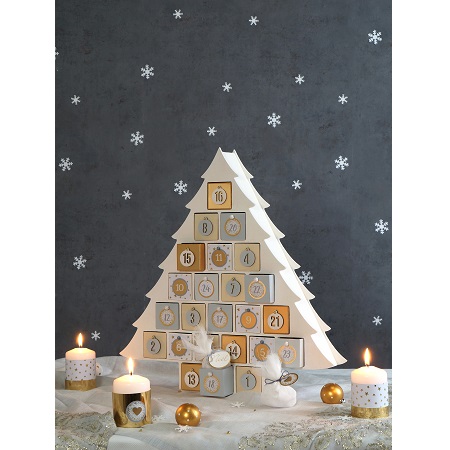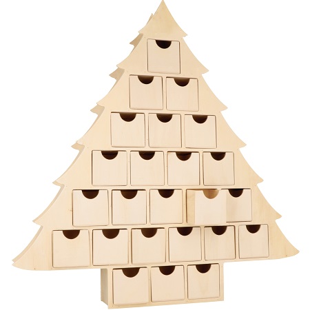 Calendrier de l’avent en bois en forme de sapin d’Artemio comprenant 24 tiroirs.